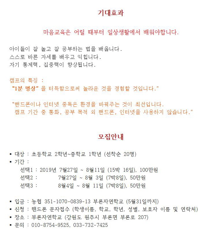 2019년 여름방학 캠프 모집중입니다!